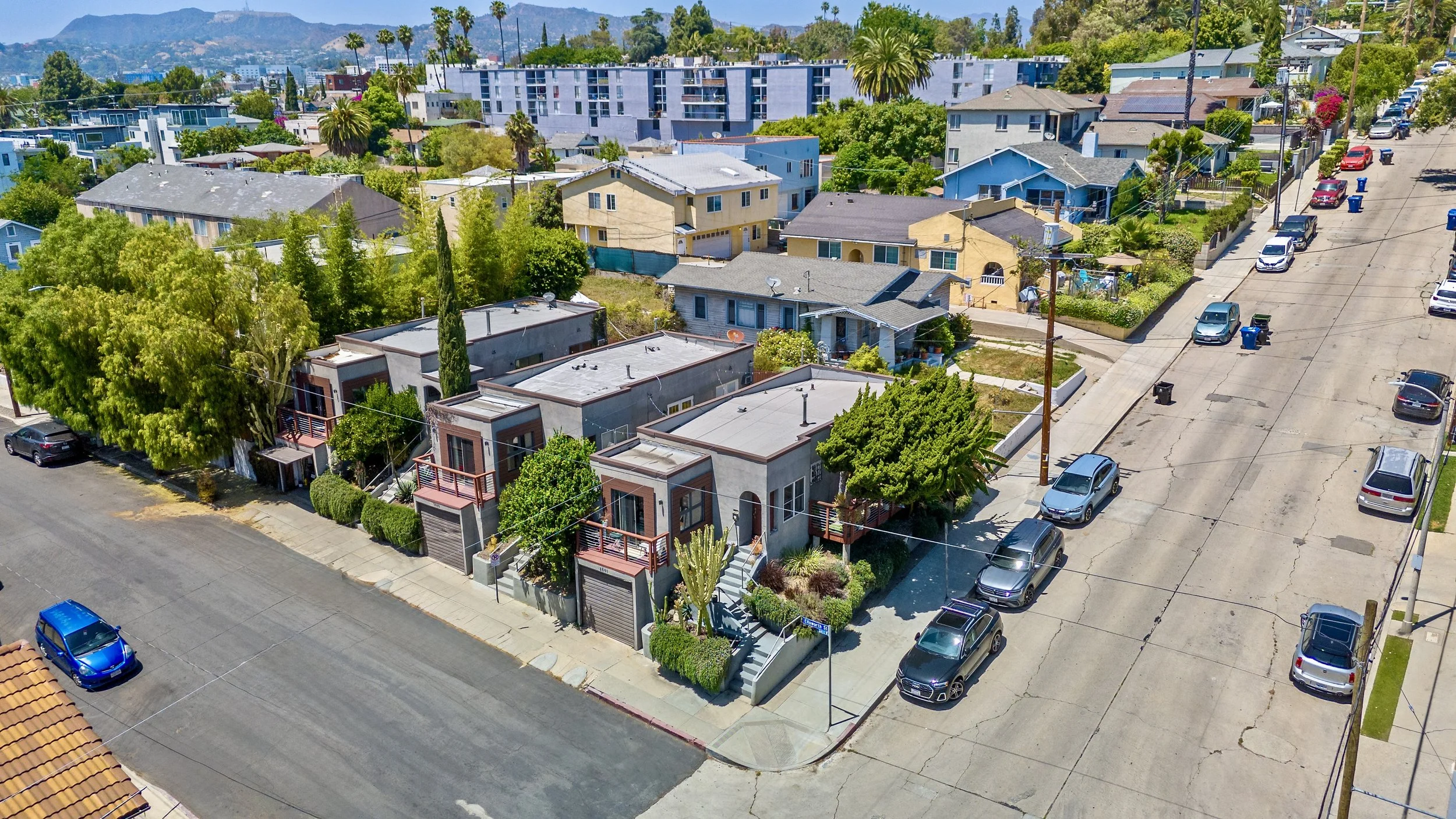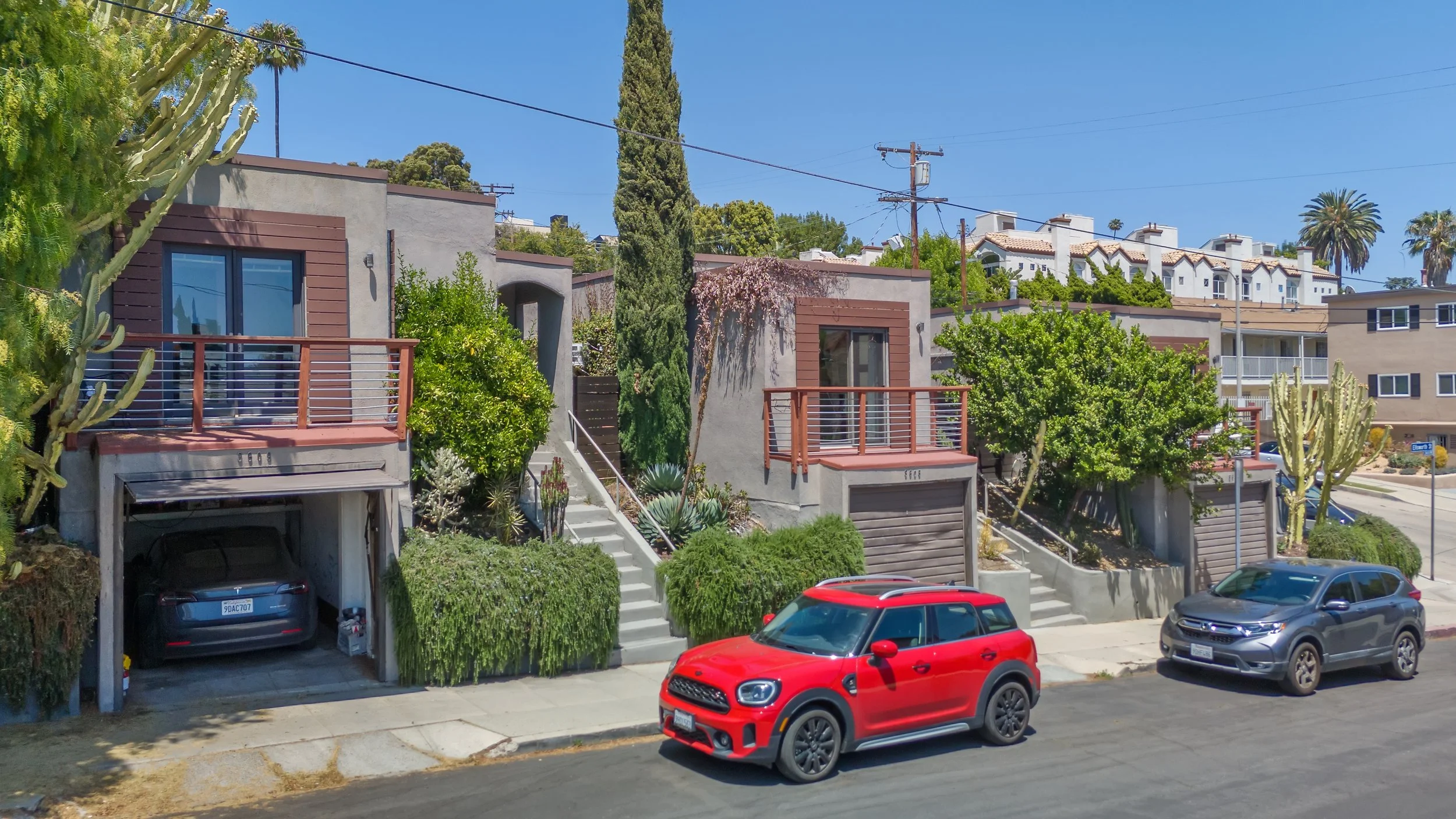Discover an exceptional investment opportunity in the heart of Silver Lake! This unique corner lot features three separate, stand-alone Modern Spanish bungalows, each offering a spacious 1-bedroom + office layout with 1 bathroom. Enjoy private outdoor living with a balcony and additional deck, plus the convenience of a private 1-car garage for each unit. Inside, you'll find open-concept floor plans and upgraded kitchens equipped with a refrigerator, dishwasher, range, hood, and in-unit washer & dryer. Perfectly situated for urban living, these bungalows are just moments away from Silver Lake's trendy shops & restaurants, beautiful parks & reservoir, and major freeways. Don't miss out on this unique property in a rapidly developing area!